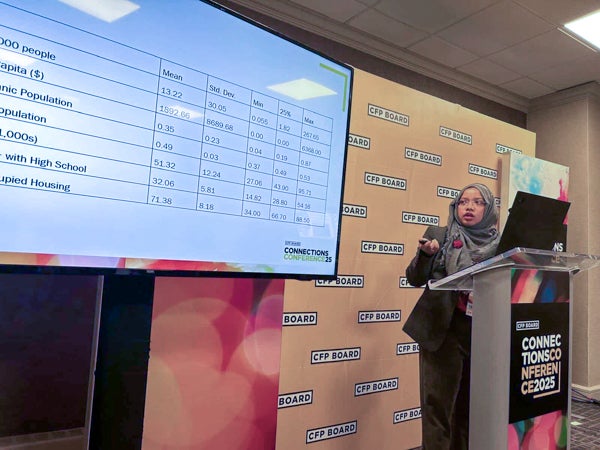 “Conferences like the CFP Board Connections Conference give students a rare chance to see how classroom learning translates into professional practice,” Khatun said. “They hear directly from experts, learn about emerging trends, and begin forming relationships with leaders in the field. These experiences build confidence, help students understand where they belong in the profession, and open doors to future opportunities.”