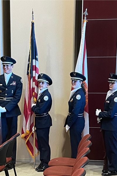 In celebration of Veteran’s Day, Florida State University Panama City hosted the annual Veteran’s Day Celebration for an audience of JROTC cadets representing high schools all across Bay County. Junior Reserve Officer Training Corps is a program where high school students develop important life skills including leadership and problem-solving.