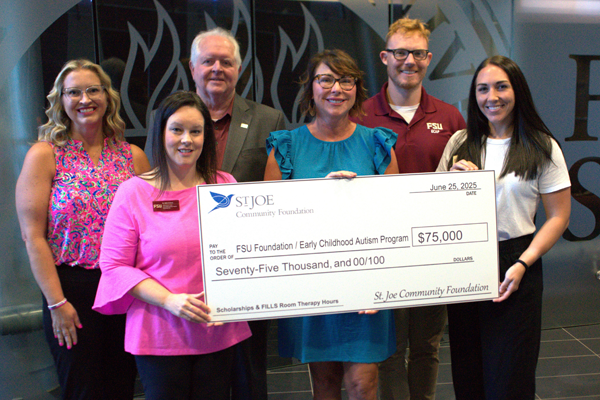 The St. Joe Community Foundation on Wednesday presented checks totaling more than $113,000 to the Florida State University Foundation to support two FSU Panama City initiatives: the Early Childhood Autism Program and The Collegiate School.